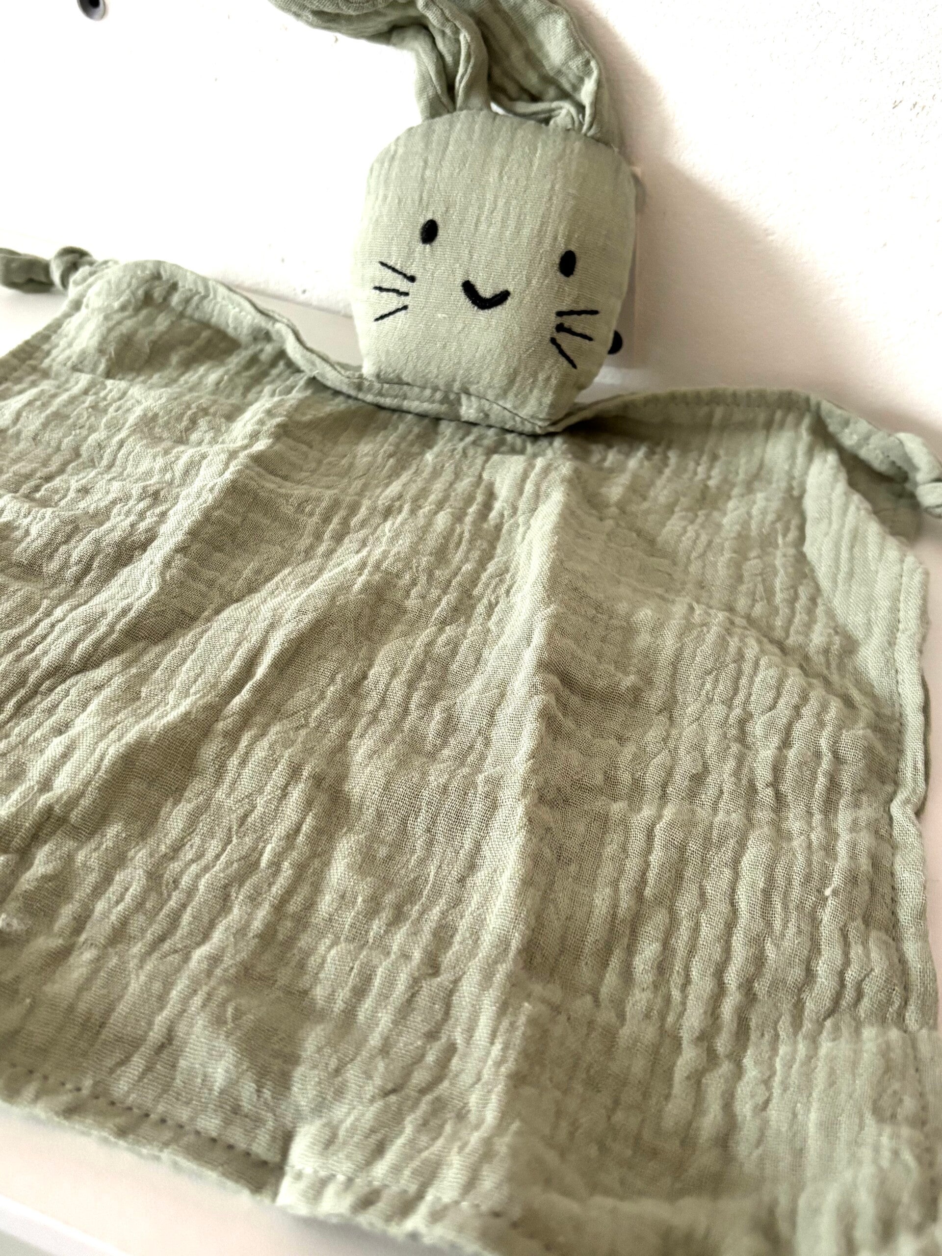 Un lapin tout doux avec lequel se blottir pendant des heures et s'endormir ! La partie carrée mesure 30x30cm. Parfait comme cadeau de maternité ! 💚